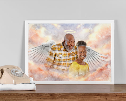 The portraits can feature carefully edited compositions, color corrections, clothing changes, and background blends, with optional additions such as text overlays, dates, or personal messages like “Forever My Mom”, “Still With Us”, or “Guiding Me from Heaven”. Whether you’re ordering a digital file for instant sharing or a physical print on canvas, wood, or photo paper, every piece is prepared with emotional care and artistic precision. For those who prefer discretion or distance, digital versions are available for immediate download and can be shared with family across different states or printed locally with high resolution.